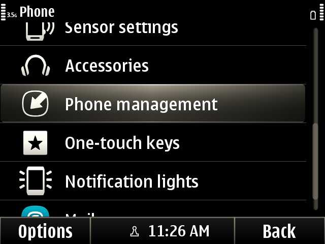 2. Settings > Phone > Phone management Published July 30, 2011 at 640 × 480 in How To Reset the Nokia E6 and Re-install the OS