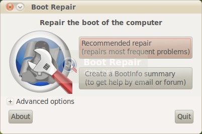 Then click the “Recommended repair” button to reinstall the Grub2 bootloader with options to launch Windows, Ubuntu and any other OSs you have on your hard disk.